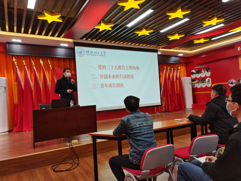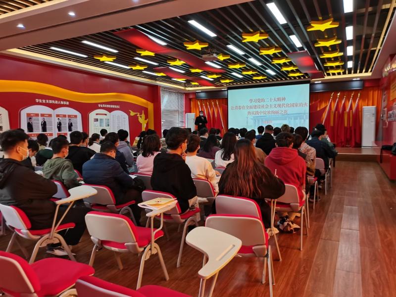 12月6日,太阳集团2138党委副书记唐承泽在党员活动中心为机械系第一、第三、第四党支部讲授“学习党的二十大精神,让青春在全面建设社会主义现代化强国的火热实践中绽放绚丽之花”主题党课。