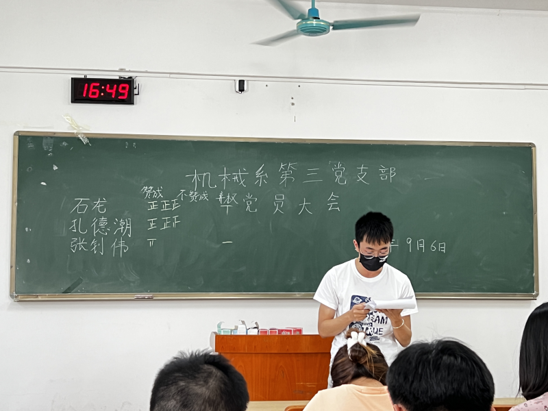 2022年9月6日下午16:20,我系第三党支部在3203召开支部大会,第三党支部共36名党员,实到29人,其中正式党员18人,实到17名参加本次会议。
