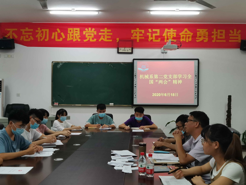 第二党支部党员观看了《做好“六稳”工作 落实“六保”任务》和《习近平在两会上的暖心话》两个视频,全体党员深受鼓舞、倍感振奋,纷纷表示通过本次学习加深了对“两会精神”的理解,了解国际国内形势。李杰同志表示,希望同志们能够深入贯彻落实“十九大”精神和“两会”精神,找准目标,学习好科学文化知识,为祖国的进一步腾飞贡献力量。
