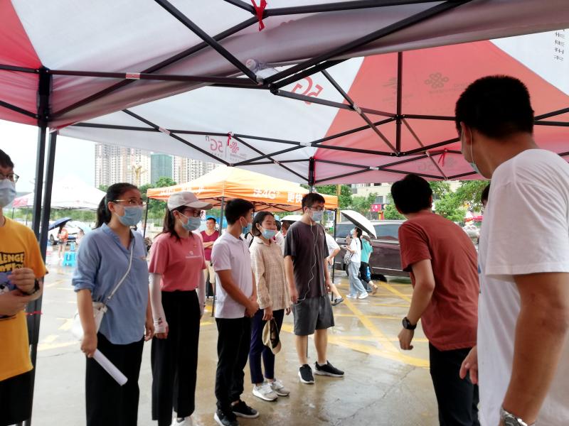 从早上8点到下午5点,迎新工作进行得如火如荼,到处都是忙碌的身影。从校门口测体温、检验“钉钉审批表”,到大本营注册登记,再到新生入住宿舍,党员同志和志愿者们全程帮助新生提行李,并耐心回答他们的问题。尽管天气炎热,大家依然坚守在自己的岗位,全天候待命。当你问起他们累不累时,他们都说:作为一名党员,一名志愿者,为人民服务是我们的宗旨。更何况每年都会有人来做志愿工作,这是一种奉献精神,我们更应该去继承和发扬。