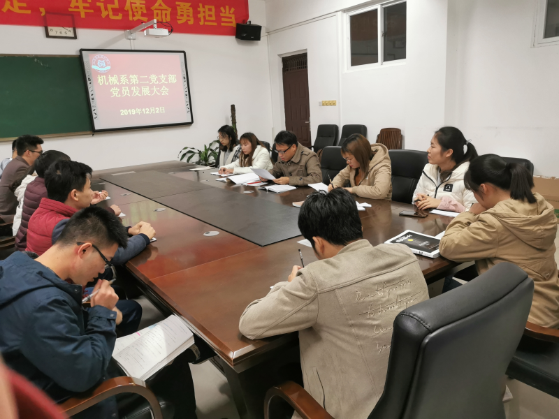12月2日21:00,我系第二党支部党员发展大会在藏修楼205室召开党员发展大会。会议由李杰书记主持,支部党员、预备党员参加,主要讨论本支部接收袁世雄、陈定东和欧艳凤三位同志为预备党员事宜。