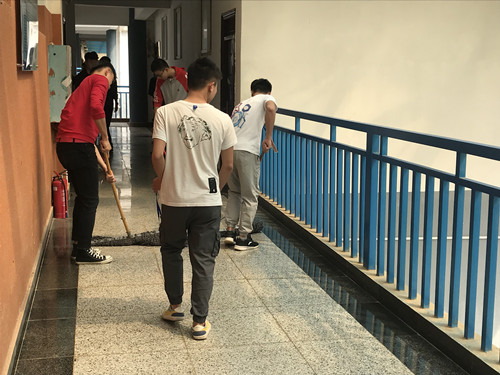 在易远主任的带领下党建全体工作人员拿着各种清扫工具来到清扫分配区藏修楼5楼参加扫除活动。活动过程中,党建人热情洋溢的挥洒着他们的汗水,展现了他们阳光向上精神饱满的良好状态,并取得了良好的效果。