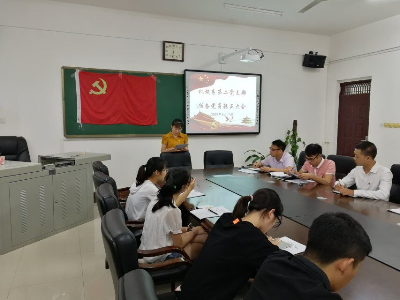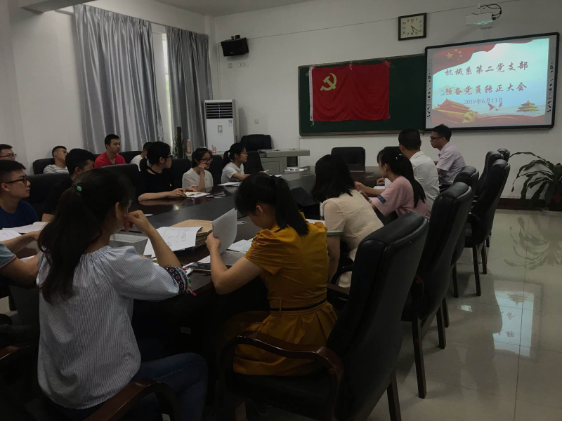 2019年6月13日下午,我系第二党支部预备党员转正大会于藏修楼3205会议室召开。本次大会由支部书记李杰同志主持召开,支部全体在校党员及转正党员入党介绍人参加会议,支部正式党员19名,实到正式党员人数11名,符合开会要求。