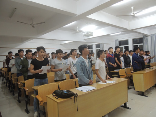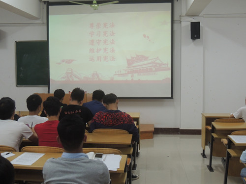 会上,第一项,奏唱国歌。第二项,全体积极分子观看宪法宣传视频。第三项,宣读宪法。第四项,由副主任严林涛点出注意事项,并倡导积极分子多学习宪法的内容。