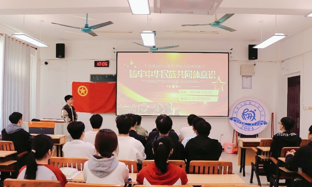 为加强青年团员对中华民族共同体的理解与认识,12月2日上午,智造23-本2班于3202开展“铸牢中华民族共同体意识”主题示范团日活动,本次活动由团支书主持,智造23-本2班全体团员参与活动,2023级、2024级团支书观摩活动。