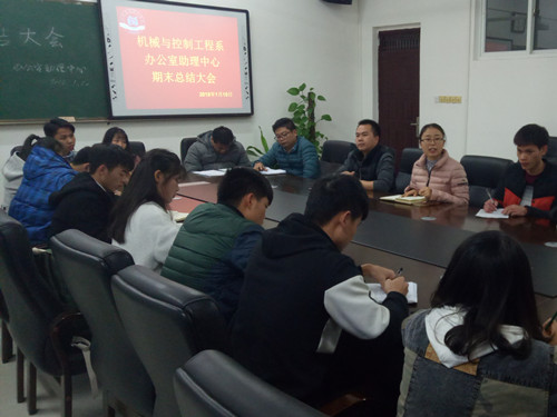 1月10日下午17时,我系办公室助理中心于藏修楼3205会议室召开本学期期末总结大会,出席本次会议的有我系党总支副书记兼学工组长甘锦琛老师、我系辅导员张业娟老师、辅导员李肖然老师、辅导员陈平东老师、辅导员何建金老师、辅导员韦选建老师以及我系办公室助理中心16、17级全体助理。