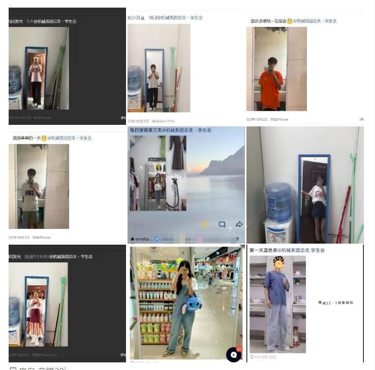 在欢度国庆期间分享自己的一周穿搭,通过穿搭来展现每天不一样的自己。我系注重学生的个性发展和特长培养,注重学生的兴趣和爱好的培养。在充分挖掘学生特长的基础上,鼓励学生积极参加社会实践活动,增强学生的社会实践能力和竞争意识,锻炼了学生的综合素质和能力。通过此次国庆系列活动,为学生营造了一个健康,和谐的学习生活环境。