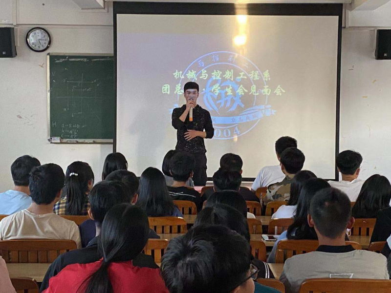 会议首先由唐淑珍老师讲话,唐老师阐明了团总支·学生会的工作原则:以学业为重的重要条件下再展开学生会任务工作,更宣布了培训班的正式开班;其次议程为主席团讲话,主席团成员都表现出了对新生试用干事们的热烈欢迎以及热切期盼,鼓励新生试用干事应更加团结协作,以及与人和谐相处;第三项是新生试用干事代表与团总支·学生会干事代表讲话,表明新生试用干事的从事态度要积极;以及系学生会干事对新生试用干事的殷切期望;第四项是新生试用干事的自我介绍;第五项是各部门负责人的讲话,她们作为新生试用干事的最好榜样和带领人,身体力行地诠释了什么叫团结协作。