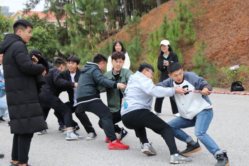 活动中进行了“有轨列车”、“背夹球”、“抢凳子”和“拔河比赛”等游戏。活动通过小组的形式进行,“有轨列车”先进行了组与组的对决,干事们都积极参与其中,比赛过程也是充满了欢声笑语,加油呐喊声更是不绝于耳,处处可以感受到团队合作的力量。“有轨电车”游戏中各小组组员合作,有条不紊的前进,展现了各组组员的默契与配合。紧接着,抢凳子、拔河比赛等游戏让人乐此不疲,队员们积极参与其中,并且齐心协力,整场活动精彩不断,高潮迭起。最后,学生会全体成员合影留念,至此,素质拓展活动顺利落下帷幕。