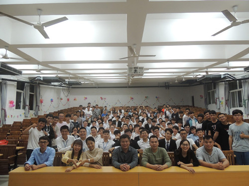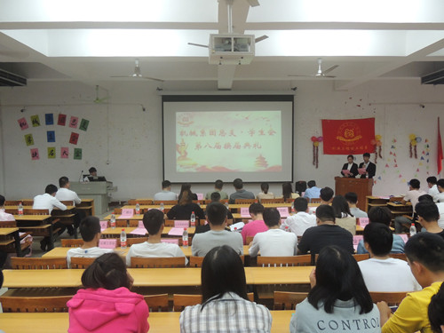 2018年11月15日下午5:40我系于8108教室召开团总支·学生会第八届换届大会。我系党总支书记袁斌、分校团委副书记谢欢、系党总支副书记兼学工组长甘锦琛、系团总支书记唐淑珍及系全体辅导员老师,校团体代表,各系学生团体代表以及各班学生代表参加此次大会。