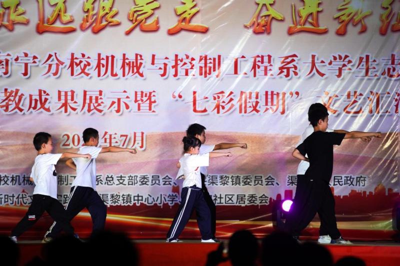 为了更好展示学习成果,为少年儿童们提供了一个充分展示自我的舞台,培训班课程结束后,志愿服务队举办了支教成果展示暨“七彩假期”文艺汇演。歌唱、舞蹈、朗诵、武术、书法秀等节目精彩纷呈,观众掌声不断,文艺汇演赢得了社区居民和家长们的一致好评。