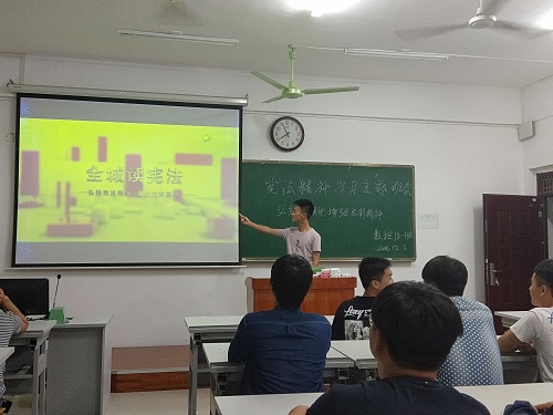此外,各班组织召开了以“弘扬宪法精神,增强法制观念”为主题的班会,观看了《全城读宪法宣传片》和《中国共产党中央委员会关于修改宪法部分内容的建议》等视频资料,通过主题班会的形式向同学们介绍了宪法知识,班会上同学们积极发言,纷纷表示维护宪法的权威是大学生的光荣使命和神圣职责。