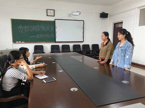 为积极参与分校首届“书香空港,慎思笃行”诵读比赛,4月27日下午,我系在藏修楼3205会议室举行分校诵读比赛系部选拔赛,评委有我系辅导员李肖然老师和张业娟老师。
