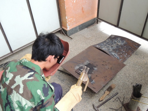 来到焊工竞赛现场,吴斌老师荆条有理的安排着比赛,参加竞赛的同学全副武装,工衣、手套,护罩一应俱全。他们屏住呼吸,镇定的拿着钳子夹着焊条转动出一圈圈的鱼鳞纹,生怕有丝毫差错。激烈的比赛持续了两个多小时,预知结果如何,敬请期待。