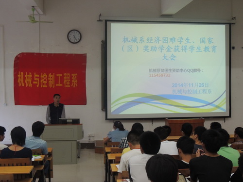 11月28日下午,我系在启智楼101教室召开经济困难学生、国家(区)奖助学金获得学生教育大会。参加本次会议的有我系学工组长刘术刚、辅导员王芳及我系获得国家奖助学金的全体学生。