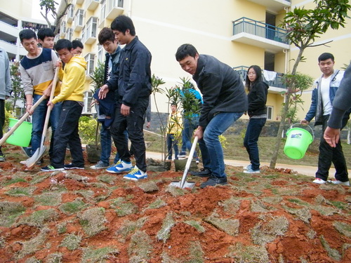 在我系的种植区域内,同学们手持工具,将一棵棵充满希望的小树苗种下。在此过程中刘术刚老师和同学们一起挖坑植树,倡导同学们多参加社会实践活动,多做公益工作,为我们的美好校园奉献自己的力量。整个植树活动井然有序,同学们干劲十足,当天共种植四十多株树苗。