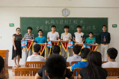 仪式开始由生活部干事黄子健同学对此次的文明宿舍评比中的工作和发现的问题等方面进行总结。本次活动共评比出了6个“文明宿舍”,张老师与王老师一起为获得“文明宿舍”称号的3B112、3B323等6个宿舍颁发流动红旗。