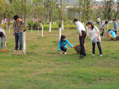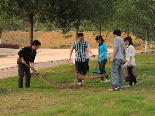 在我系领导老师的带领下,同学全心投入本次活动中。由于部署得当,分工明确,责任区很快被清理得干干净净。同学们热情洋溢、精神饱满用自己的实际行动为学院增添一份清新。
