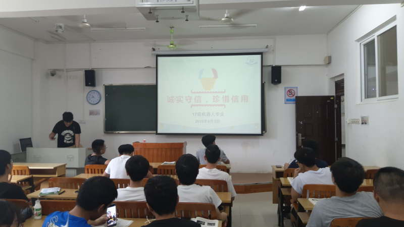 2019年6月3日下午16点,太阳集团2138机械系工业机器人17-2班,地点尚善楼1204教室,召开端午离校安全主题班会和诚实守信主题班会,由班长杨逸组织本次会议,机器人17-1、机器人17-2全体成员参加本次班会。
