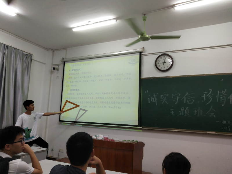 端午假期即将到来,独属于端午的粽香也开始弥漫开来,为了使同学们愉快的度过假期之后安全返校,2019年6月3日20时55分,机电18-本2班于3304教室开展了游泳安全暨端午假期安全主题班会,借此机会,随后也展开了“诚实守信,珍惜信用”主题班会,会议由团支书主持召开,同时以PPT的形式展开。
