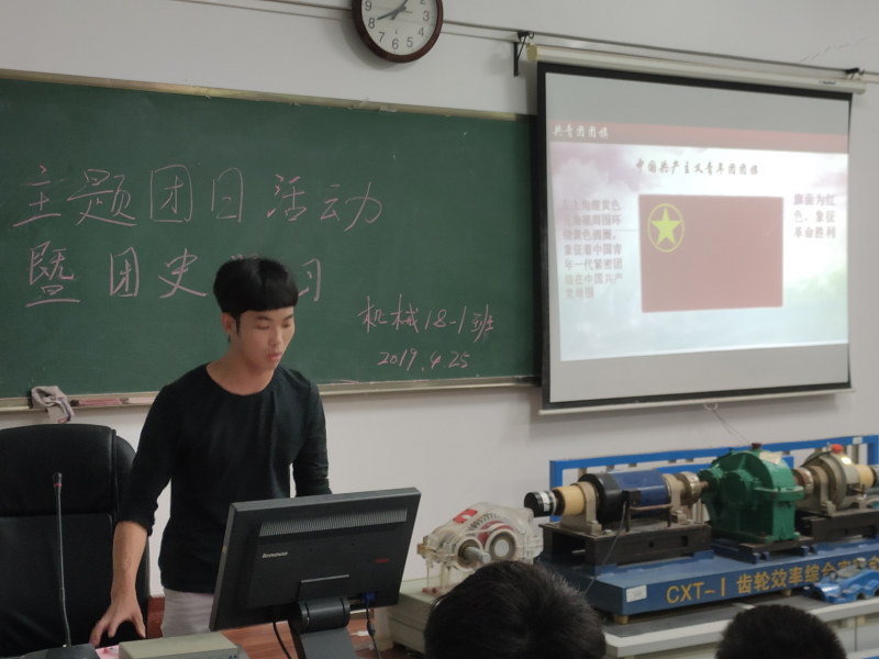 活动一开始,本次活动宣讲人就围绕共青团内基础知识,共青团的组织规则,共青团的权利和义务等五大方面进行讲解,向同学们介绍了身为一个共青团员应该进行的责任与义务。详细地向同学们介绍了团旗,团徽,以及团员证所蕴含的含义及象征意义。最后,团支书刘虎岗同学向大家播放观看“一学一做”如何做一个共青团员的教育视频,使同学们感触颇深。