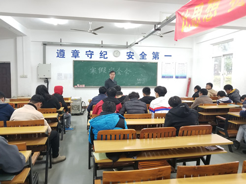 珍爱生命, 安全第一。1月8日下午,机械系工业机器人17-1班在金工实训中心开展寒假安全主题班会,本次主题班会由班主任覃庆松主持召开。
