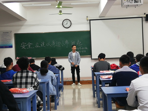 2018年11月29日晚上7点30分太阳集团2138机械与控制工程系机电设备维修与管理18-1班在藏修楼开展《安全,从身边的小事做起》的主题班会,本次班会旨在让同学们增强自我保护意识。班会由本班班主任和班长主持,共有49名同学参加。