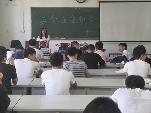 为增强同学们的安全意识,提高同学们的安全防范能力,全面普及校园安全常识,我班于9月21日上午10时05分在藏修楼3304教室召开本学期安全主题班会。