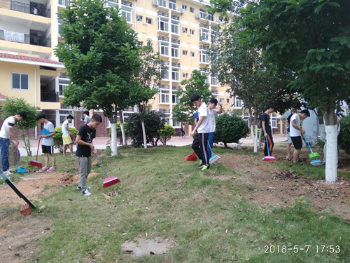 2018年5月7日下午第八节下课后,我系数控17-1、数控17-2、模具17-1、模具17-2、自动化17-1、自动化17-2这六个班级获得国家资助的同学,对我校体育馆周边的绿地进行了一次清扫落叶的公益活动。