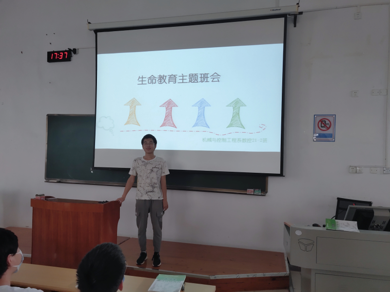 为进一步提高大学生的心理素质,促进大学生的身心健康和谐,普及宣传,深入开展心理健康教育,数控21-2班于2022年4月25日星期一17:30,在启智楼8308教室开展生命教育主题班会。此次班会由心理委员许哲源主持,数控21-2班全体成员级班主任岑海南参加。