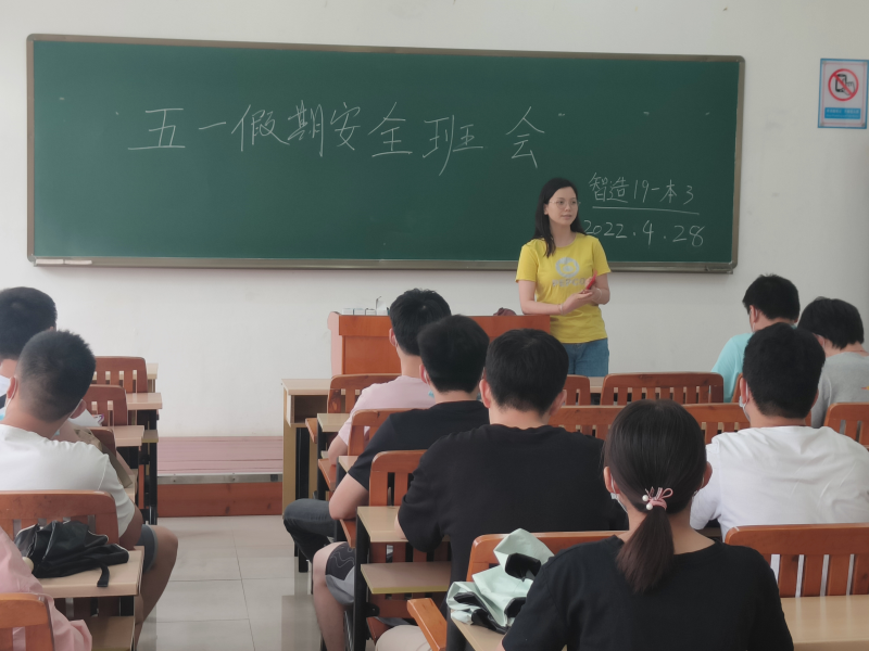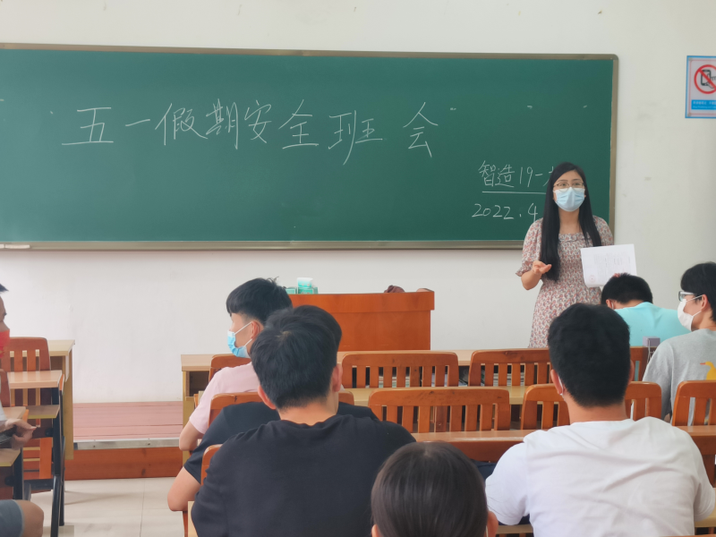 2022年4月29日中午12:00分整,我系智造19-本3班于藏修楼3301召开五一假期安全主题班会,班主任黄富连老师、辅导员丘东林老师以及班级全体成员参加此次班会。 会议中,班主任和辅导员就假期防疫政策、假期学校安排以及假期学习计划向同学们深入浅出地介绍了假期期间,我们应该注意哪些安全问题、防疫问题以及学习问题,要求大家放假期间非必要不离校、非必要不离扶绥。如果要离开扶绥的同学,首先要在钉钉报备,严格履行请假手续。 最后,预祝同学们五一假期愉快!