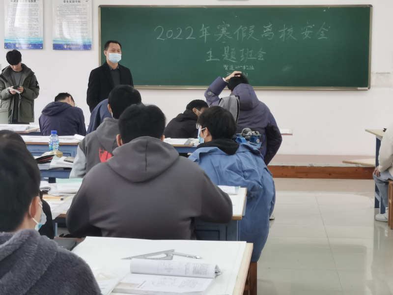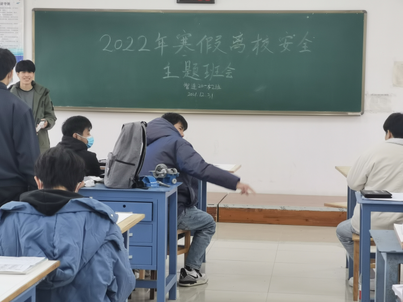 寒假临近,天气逐渐寒冷,各种安全隐患慢慢显露出来,寒季事故频频发生,这引起了我们广泛地关注,为了提高同学们地安全防患意识,尽可能地减少意外地发生,保障同学们地安全,我系智造20-本2班于12月31日早上11点半,在藏修楼3404教室开展“寒假安全教育”主题班会,班级全体成员参加。本次班会由班长廖仁祥主持,同时参与会议的有班主任韦宁照。