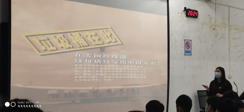 会议一开始,辅导员丘东林老师通过PPT向同学们介绍了什么是大学生基础文明。紧接着通过校园案例、以及大学生基础文明养成的重要性二个方面向同学们介绍了大学生基础文明在目前校园环境下的重要作用,从而引导同学们遵守校纪校规,做一名文明有礼貌的大学生。