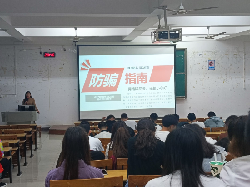 2021年10月27日晚上,智能制造工程19-本2班在8栋教学楼启智楼8308教室开展预防诈骗主题班会,主讲人为辅导员丘东林老师。