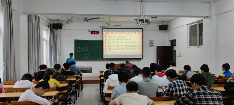 为了让同学们有一个安全愉快的五一假期,机械电子工程18-1班召开了主题班会。此次班会在6204召开,由班主任揭施军主持。时间:2021年4月27日16:25到17:00。机电18-本1班全体成员参加。