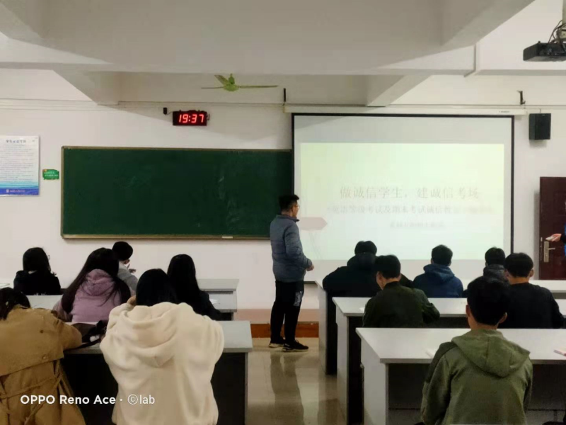 随着期末考试的临近,为了营造良好的考试氛围、净化考场环境、杜绝有失诚信行为。数控20-2班晚上7:30在藏修楼3402开展了有关“英语等级考试及期末诚信考试”主题班会。本次班会由班长黄伟主持,班主任和全体同学参加。