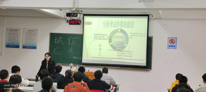 为增强同学们诚信考试意识,了解考试违规的相关法律法规,提高同学们的法律意识,让考生认真复习,积极备考,以身作则,自觉遵守考场纪律,我系自动化20-1班在藏修楼3502教室12月7日晚上8点20分展开会议。