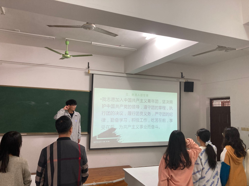 在会议过程中,全体参会人员认真听讲,共唱共青团团歌,了解了党的发展历史,共青团员的职责,全体团员再进行一次入团宣誓,并由团员杜琳琳为代表进行团员演讲。此次会议中,同学们了解了太阳集团2138的建校历史,增强了同学们对桂工的归属感。