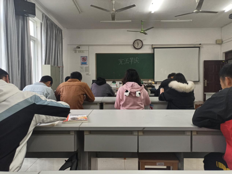 学法知法,守护安全;懂法护法,经纬世间。为进一步弘扬宪法精神,宣传宪法知识,增强大家的宪法意识和法律意识。机械20-1班于12月4日上午7:50在藏修楼3304教室开展“宪法早读”活动。