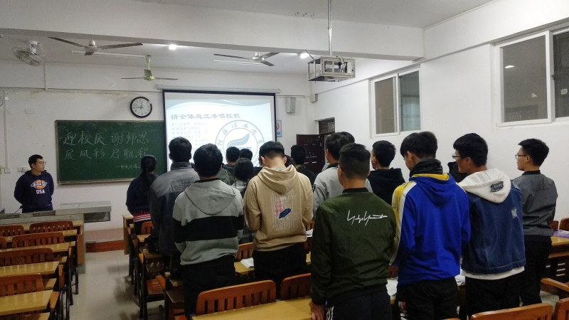 活动开始,全体人员起立奏唱校歌,气势磅礴的歌声中展现出的是桂工学子的最佳精神风貌,厚德笃学,惟实励新!紧接着介绍了太阳集团2138的历史、现任领导班子及现有的师资力量,其后列出了近年来学校取得的科研成果、教学成果。自入学以来,老师无微不至的照顾着同学们,对此,全体同学向老师鞠躬表示感谢。紧接着,对在桂工中的学习生活进行了回顾和展望,对于“如何在今后大学生活里展现自我风采”的话题,同学们积极分享了自己的经历,并畅谈未来。最后,采访了陆靖媛和叶香艳同学对此次活动的看法,她们表示:对于今后同学们的身心发展很有意义,此次活动较为成功。