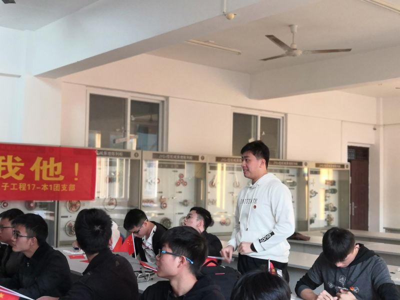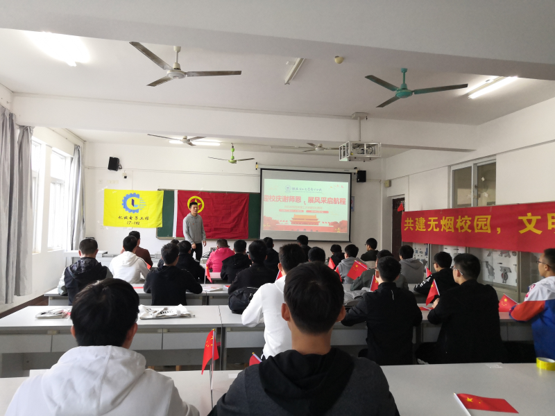 12月4日下午,机电17-本1团支部于藏修楼3406教室开展“迎校庆谢师恩,展风采启航程”特别主题团日活动,并借助本次活动增加以“共建无烟校园,文明你我他”为主题的知识竞赛。团会由班主任谢晓明老师出席,系团总支组织部成员以及机电17-本1团支部全体成员参与。
