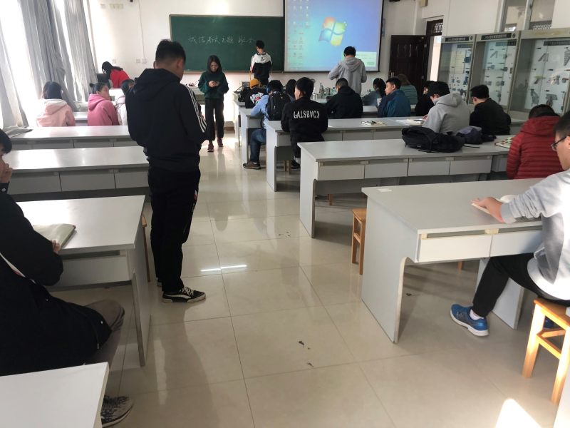 为进一步加强考风考纪教育,增强学生诚信意识,树立良好学习风气,共创良好考试环境,12月09日,模具18-2班在 6305教室组织开展了“诚信考试”主题班会。
