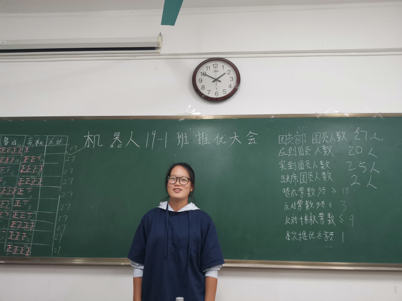 2019年10月28号下午16:20分,我系机器人19-1班在3406教室召开推优大会。参加本次大会的人员有班主任吴斌和组织部干事、班助和机器人19-1全体同学。