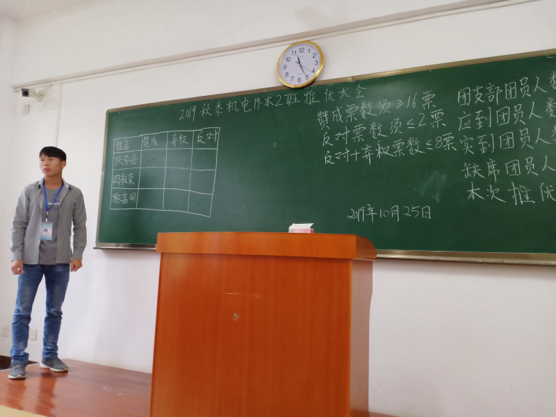 2019年10月25日下午四点,机电19-本2班在三栋3204室召开了团员“入党”推优大会,班主任李燕、班助谭军宇,机械系团组织学生会干事李品龙及机电19-2班全体成员出席此次会议。会议由干事李品龙主持展开,主要有以下几个部分。
