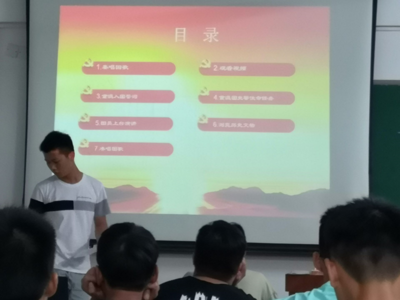 团会在国歌的唱响中拉开序幕。团会开始,团支书组织全体团员认真观看热血青年奋斗等励志影视,回顾中华人民共和国成立70周年来的辉煌成就;随后,团支书带领大家重温入团宣誓词,团支书讲述团史,全体团员认真听讲;最后,老团员曾丽君上台演讲,谈述青年使命与国家未来。