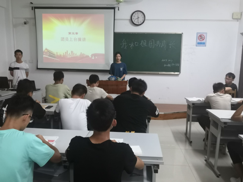 为培养学生对党和社会主义祖国的朴素感情,坚定跟党走中国特色社会主义道路的理想信念,庆祝中华人民共和国成立70周年,我班于10月7日晚7:30在3栋3506教室开展以“我和祖国共成长”为主题的班级团会活动,本次活动由团支书孔德潮主持。