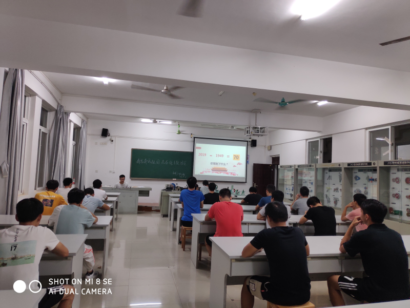 2019年10月1日是我们中华人民共和国成立70周年,为了让同学们一起感受我国70年以来的变化,一同见证祖国是如何一步步从站起来到强起来的伟大飞跃,为此机制17-本2班团支部于2019年10月8日晚20:00在3303教室内开展“我和我的祖国共奋进”主题团日活动。本次团会邀请了组织部的工作人员共同参与。