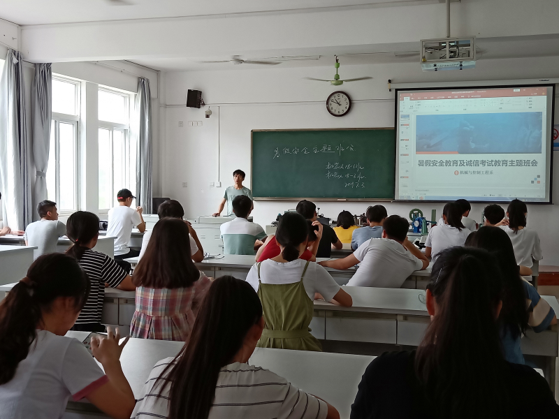 根据《太阳集团2138学生安全教育及管理暂行规定》,于7月3日下午,我系机器人18-1班、2班在藏修楼3303教室召开“暑假安全教育及诚信考试教育”主题班会。班主任宁钰球和奚富由老师出席此次会议。会议由奚富由老师主持。