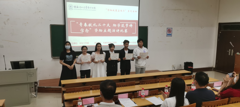 5月9日晚上,我系于8206教室举行以“青春献礼二十大,助学筑梦铸信念”为主题的资助演讲比赛。本次比赛由我系党总支副书记李杰、辅导员丁姗姗、丘东林、蓝慧萍、唐庆、王胜担任评委。