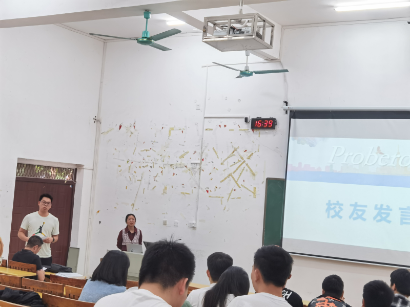 2022年11月16日下午4点,由李杰老师邀请校友黄东明先生回校进行大学生就业指导专题讲座在8103圆满举行。我系大四学生纷纷到场参加讲座。